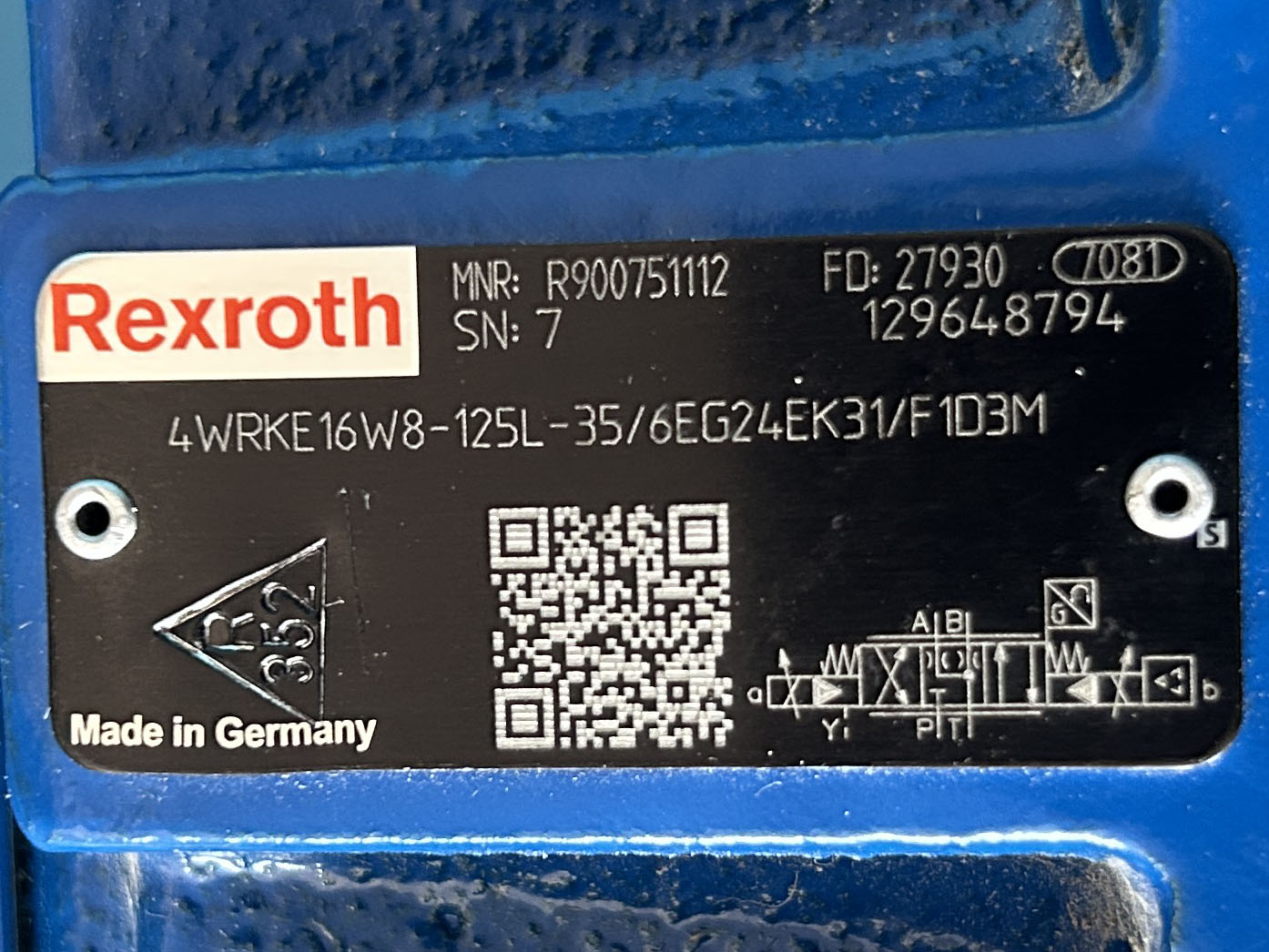 Rexroth力士乐比例方向阀R900751112 4WRKE16W8-125L-3X/6EG24EK31/F1D3M